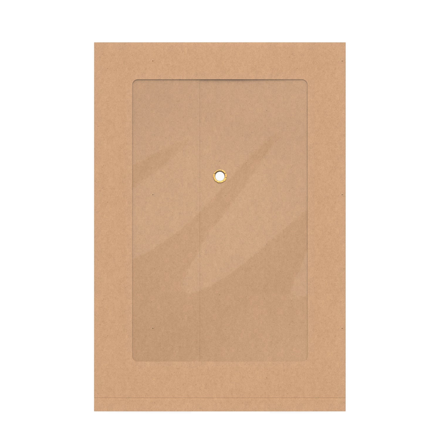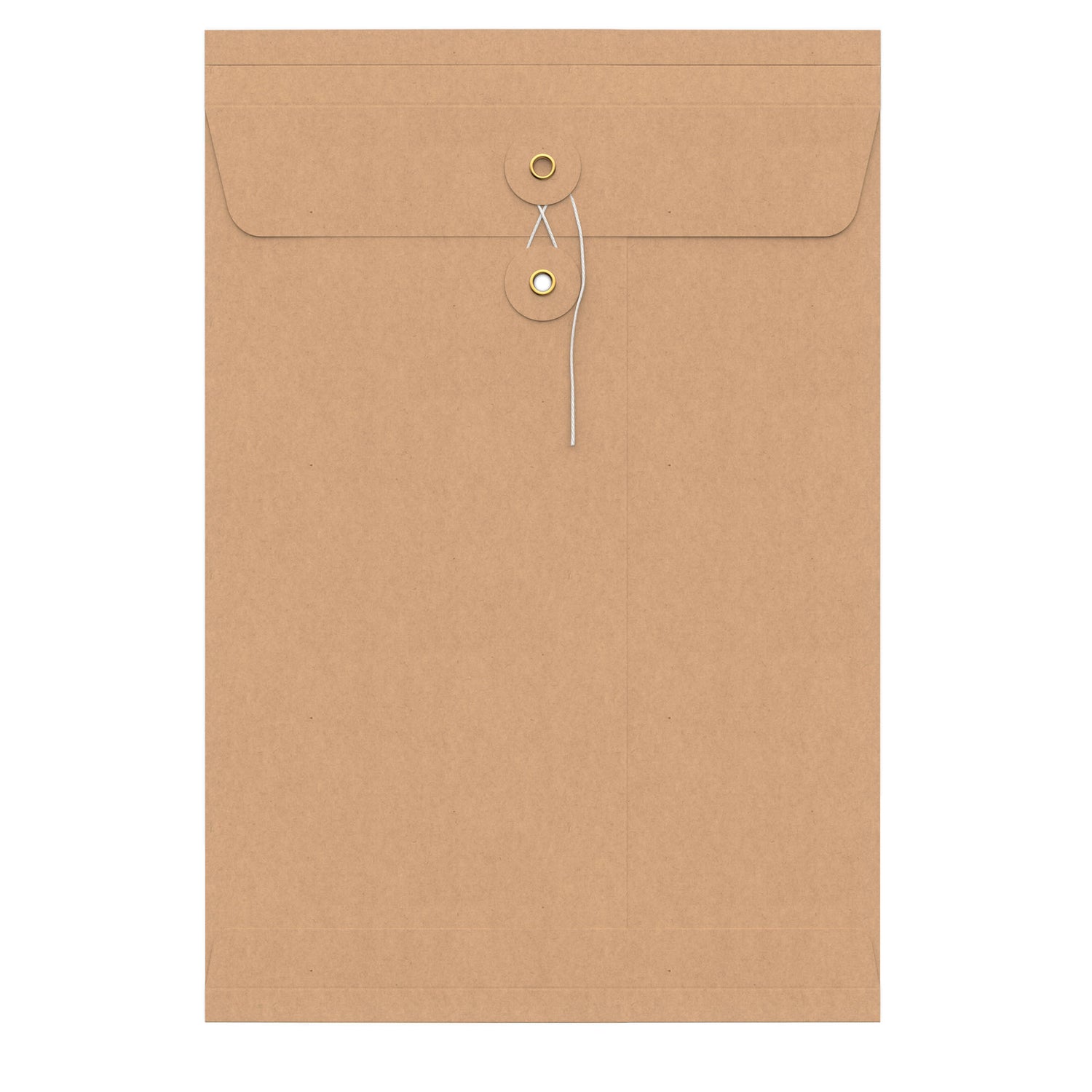Kuverter med snor- og skivelukning, bundfals og gennemsigtigt vindue.